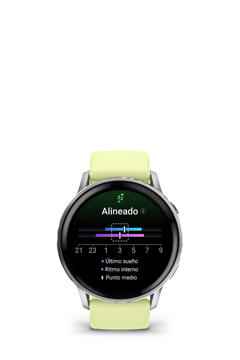 Recibe una puntuación del sueño y consejos personalizados para saber cuánto sueño necesitas y cómo puedes mejorarlo. Incluso puedes realizar un seguimiento de las diferentes fases del sueño y las siestas y ver métricas clave, como estado de VFC y la temperatura de la piel3 para comprender mejor tu salud. Además, gracias a la función de alineación del sueño, podrás comprobar tu nivel de alineación con tu ritmo circadiano y la uniformidad del sueño.